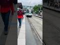 مفاجئة شاب مصري يقف في محطة القطار السريع يقف على السكة الحديدية وأمامه قطار يطلع